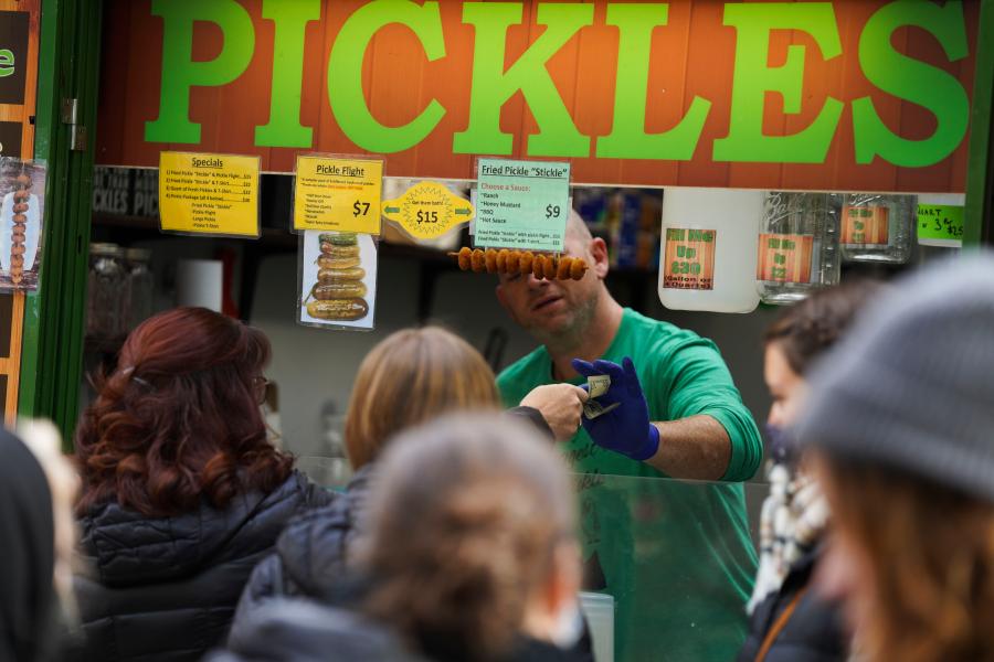 People buy food at a holiday market in New York, the United States, Dec. 7, 2021. (Photo/Xinhua)