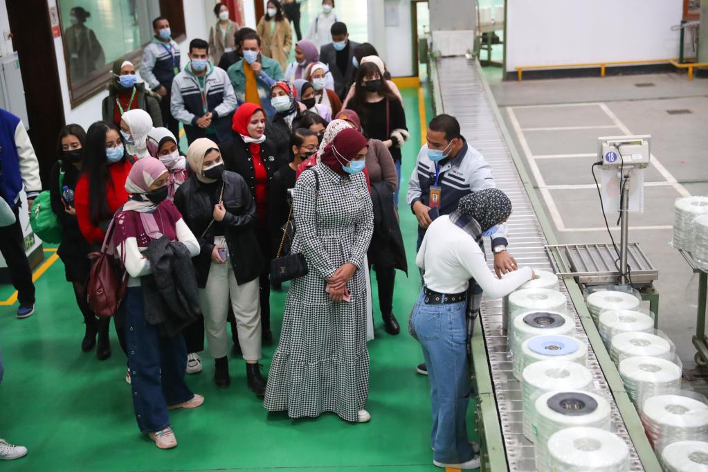 Egyptian students visit the factory of China’s fiberglass manufacturer Jushi Egypt, located in China-Egypt TEDA Suez Economic and Trade Cooperation Zone, Egypt, on Dec. 30, 2021. (Photo/Xinhua)