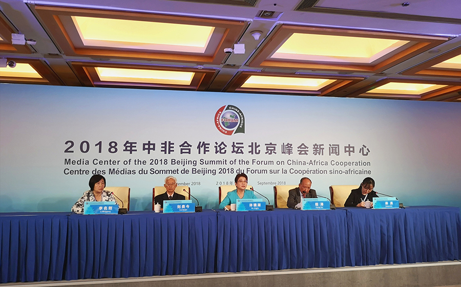 Δ A press briefing of the summit is held at the FOCAC media center at the Beijing International Hotel on Saturday. Xu Jinghu, Liu Guijin and Cheng Tao, three former Chinese ambassadors to African countries, also the former directors-general of the Department of African Affairs of Ministry of Foreign Affairs attended the press briefing to answer the media. They clarified several rumors to tarnish China-Africa relations, such as the questions of neo-colonialism, resources exploitation and China put the pressure China put on diplomacy.