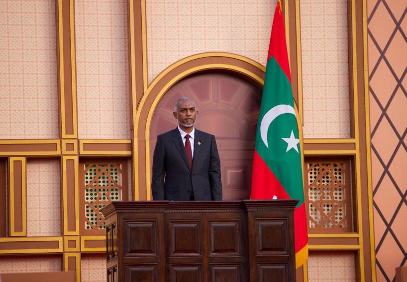 Mohamed Muizzu attends the oath-taking ceremony at the Republic Square in Male, Maldives, Nov. 17, 2023. (Photo/Xinhua)