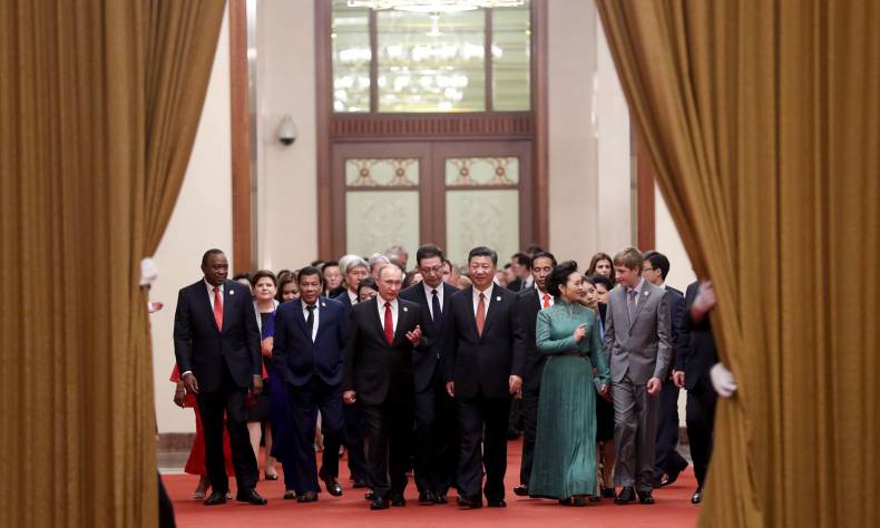 Leaders participating the Belt and Road Forum for International Cooperation exit the conference room on May 15 in Beijing (XINHUA)