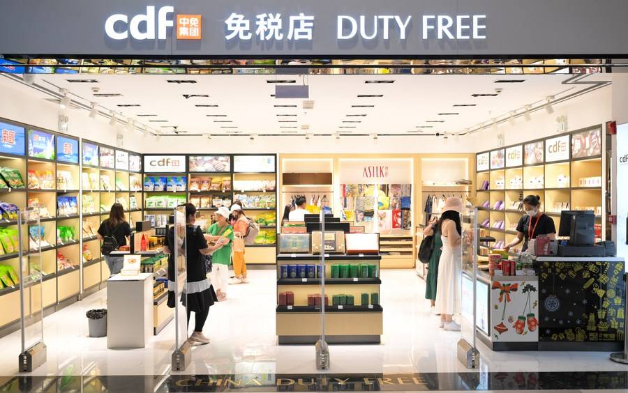 Passengers shop at a duty free shop at the international terminal of Sanya Phoenix International Airport in Sanya, south China’s Hainan Province, Jul. 26, 2023. (Photo/Xinhua)