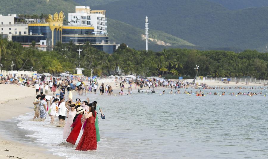 Tourists have fun at Dadonghai scenic area in Sanya, south China’s Hainan Province, Dec. 15, 2023. (Photo/Xinhua)