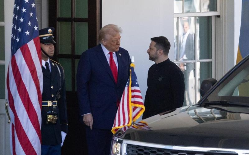 U.S. President Donald Trump (C) welcomes Ukrainian President Volodymyr Zelensky (R) at the White House in Washington, D.C., the United States, on Feb. 28, 2025. (Photo/Xinhua)